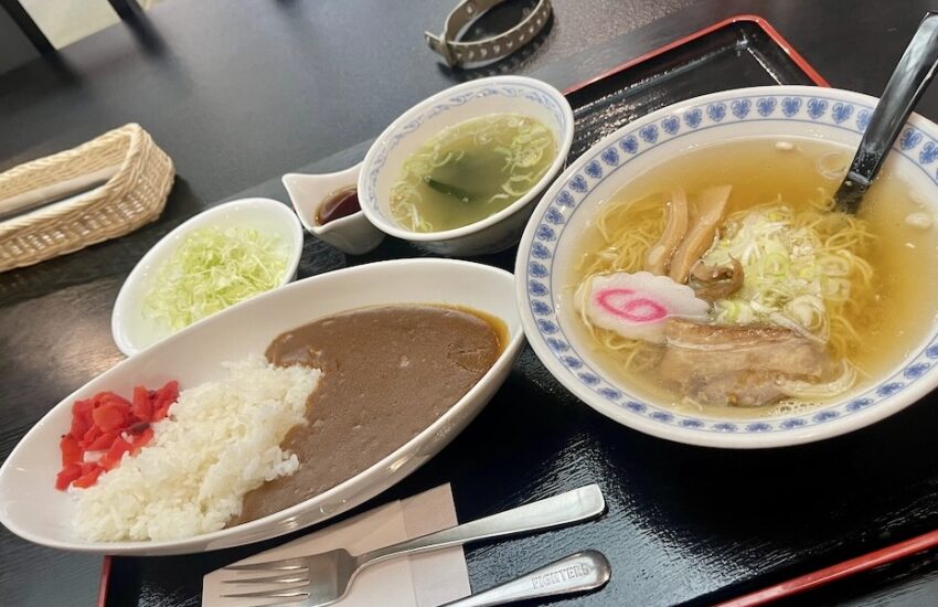 カレーライスだけではちょっと物足りないかと思い、鞭牛ミニラーメンというやつを追加しました。ミニラーメンでも550円もするなんて、何でもかんでも値上がりして、辛い世の中ですね。(笑)