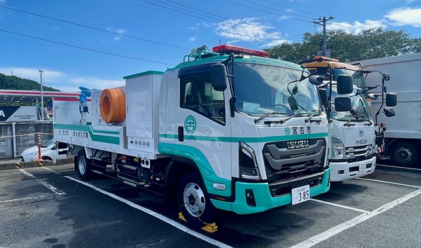 いすゞさんに用事があって寄り道したら、宮古市の排水ポンプ車 が来ていたので、写真を撮らせてもらいました。昨年の8月に、岩手河川国道事務所 さんから田鎖地区 に、排水ポンプ車の派遣 を受けた経緯がありました。宮古市でも導 … 続きを読む 宮古市排水ポンプ車