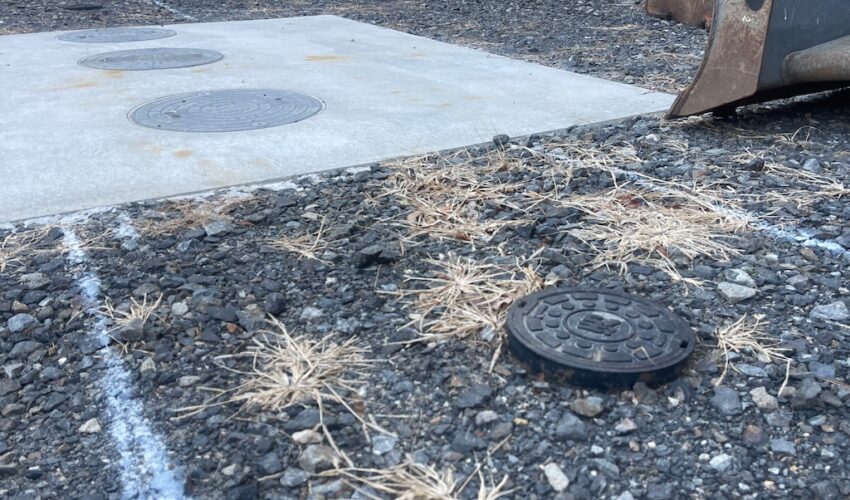浄化槽脇の鉄蓋にコンクリート