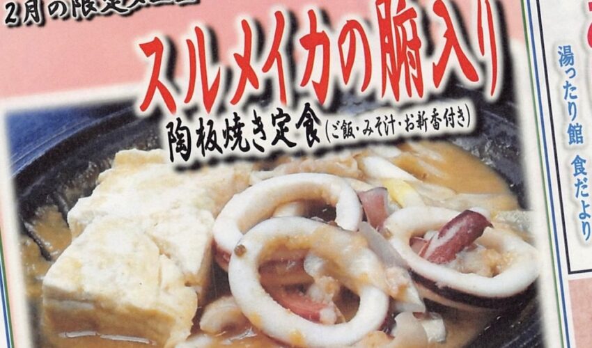 小山田です。。湯ったり館のチラシが会社にきていたので、紹介しようと思います。2月の限定メニューは「スルメイカの腑入り陶板焼き定食」らしいです。 しばらく、湯ったり館に行っていませんが、これば是非食っておこうと思いま … 続きを読む スルメイカの腑入り&華ひなチラシ