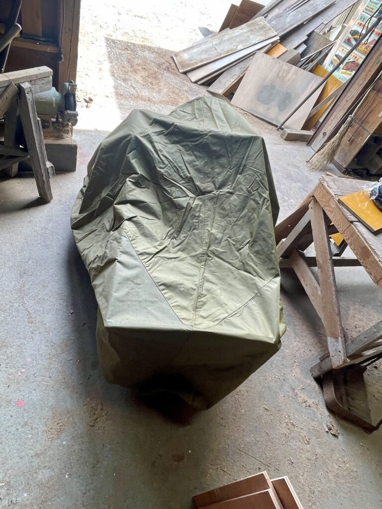先日、薪割機を購入しましたが、それ専用のシートをオーダーメイドしようと思っていました。そんなことを業者の人にいうと、専用のカバーがあるというので頼んで納品されましたが・・・フィット感が微妙すぎです。笑