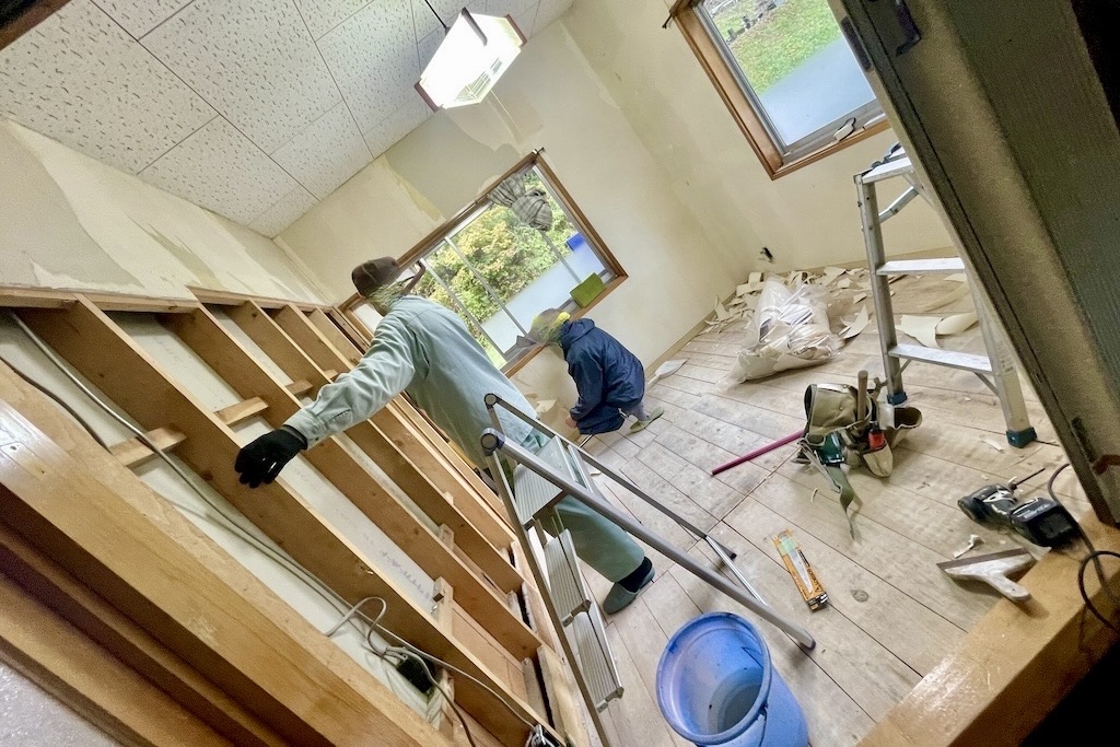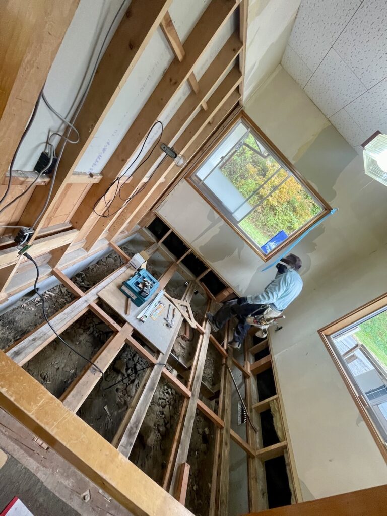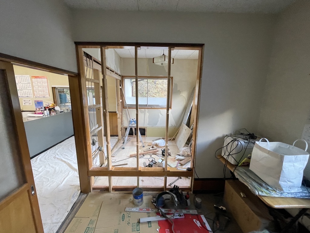 事務所の造作をしています。床が一段高くなっている小上がりの部屋がありましたが、ほぼ物置のような状態だったので、土足で入れる打ち合わせをするスペースに変えようと言う話になりました。少しづつ、写真をアップしていこうと思います。笑