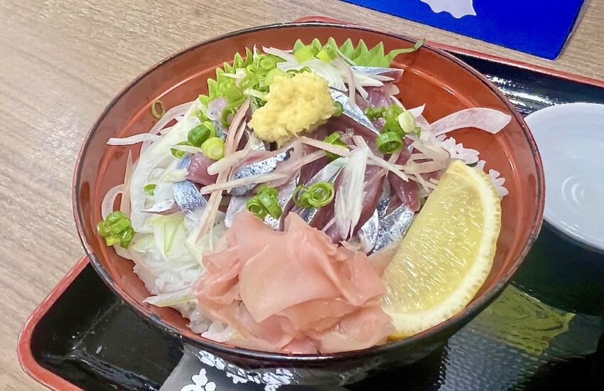 最初は、カキの玉子とじ丼を頼みましたが、目の前に「期間限定!!サンマのたたき丼」の表示を見つけました。すかさず店員さんに声掛けして、これに替えて欲しいとお願いしたら、なんとか間に合いました。