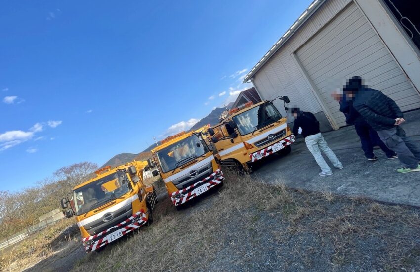 11月12日の18時頃、11月14日の14時に散布車を取りに来いというメールが、土木センターさんより、入っていました。13日の夕方にそのメールを見たのですが、14日の段取り後でしたが、とても立て込んでおり、送迎メンツを捻出できそうになかったので、後回しにしようかと思いましたが、何回も段取りするのもメンドクサイので、社長自らタクシーで乗り付けて、お持ち帰りしてきました。タクシーでもっと中まで入って行き、散布車とタクシーのツーショットを撮ればよかったと、少し後悔しております。(笑)