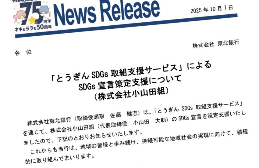 「とうぎん SDGs 取組支援サービス」による、SDGs 宣言策定支援について(株式会社小山田組)