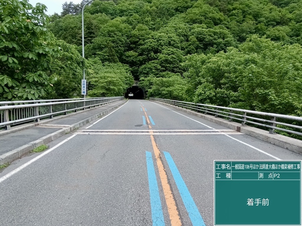 まずは、鈴久名地内にある国道106号線、法師渡大橋です。