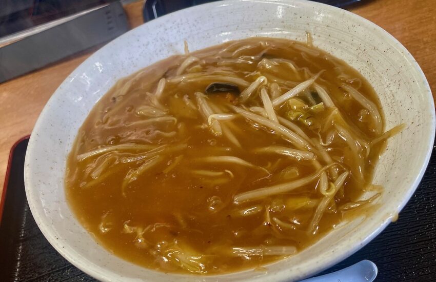 メニューにはこう書いてあります。「辛味あんかけ麺! 酢を入れると一味違った美味しさ!」タンメンもそうですが、この手には途中で酢を入れて味変するのが好きです。 今回も味変、楽しませて頂きました。(笑)