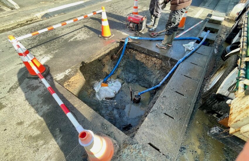 1月12日は水道組合の休日電話当番だったのですが、朝イチに電話が来て見に行ったら、バリッと漏水していました。(笑) 公道修理の当番長ではなかったのですが、当番ではあったため、水道部の方と相談して、「明日(1/13)