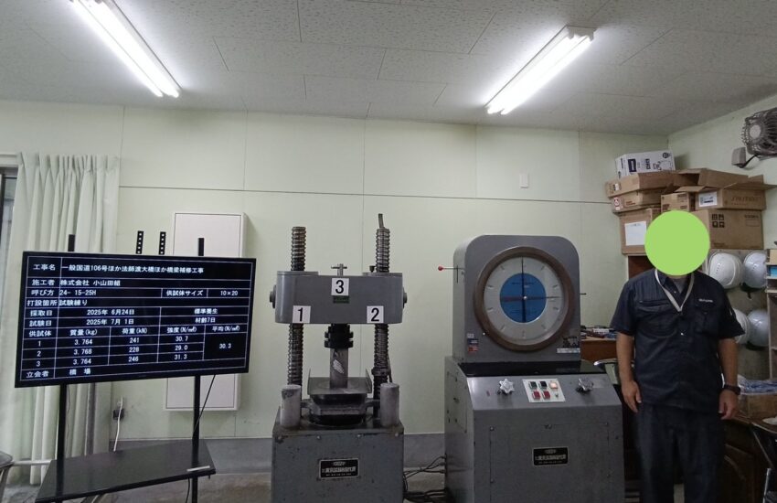 はしばです。。。生コン試験ネタ続きです。。。 打設が終わっても、品質確認はまだまだ続きます。そして、現場で作った供試体ですが、実はここで終わりではありません。 この供試体たちは、しばらく大事に養生されたあと、後日『